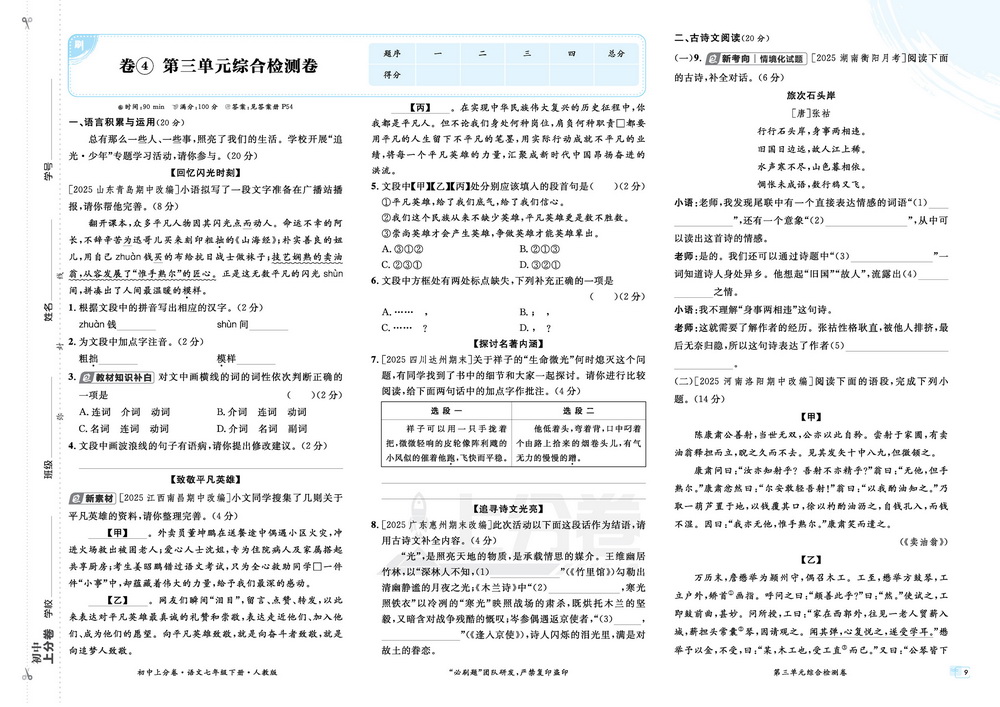 新教材人教版七年级下册语文第三单元测试卷四