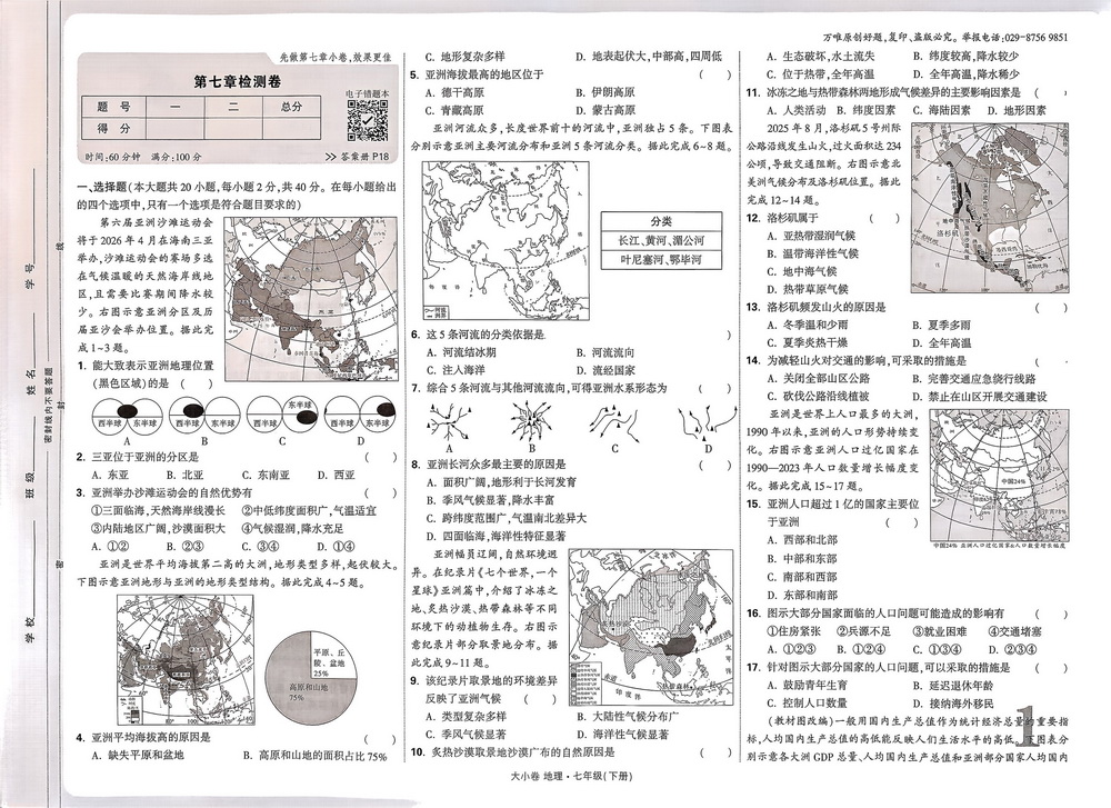 新教材人教版七年级下册地理第七章测试卷七