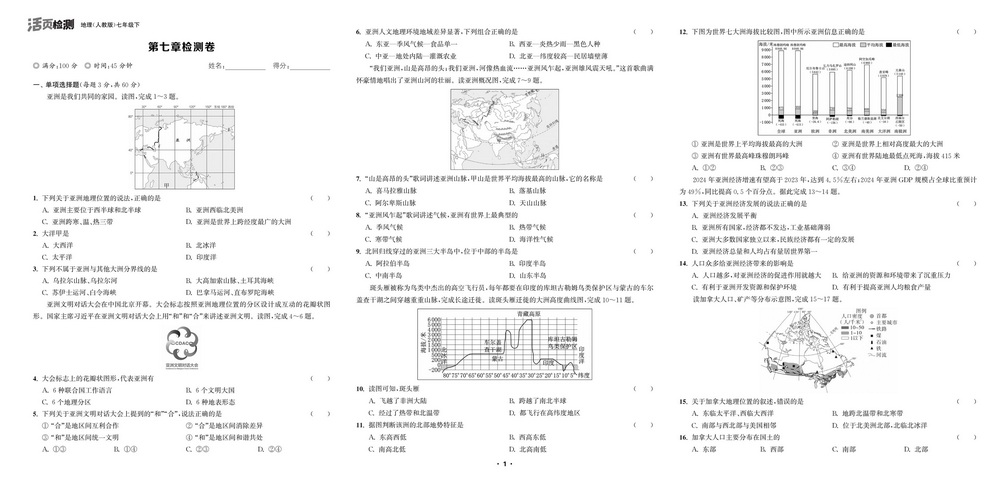 上一篇:新教材人教版七年级下册地理第七章测试卷五