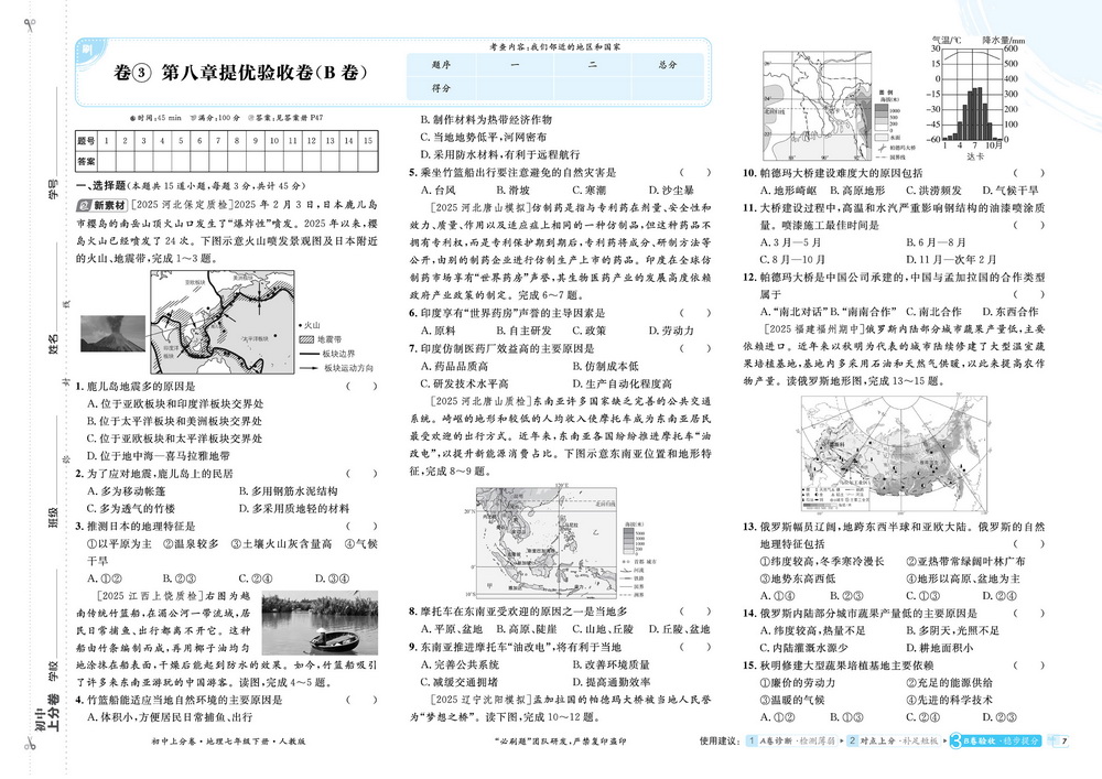 新教材人教版七年级下册地理第八章测试卷七
