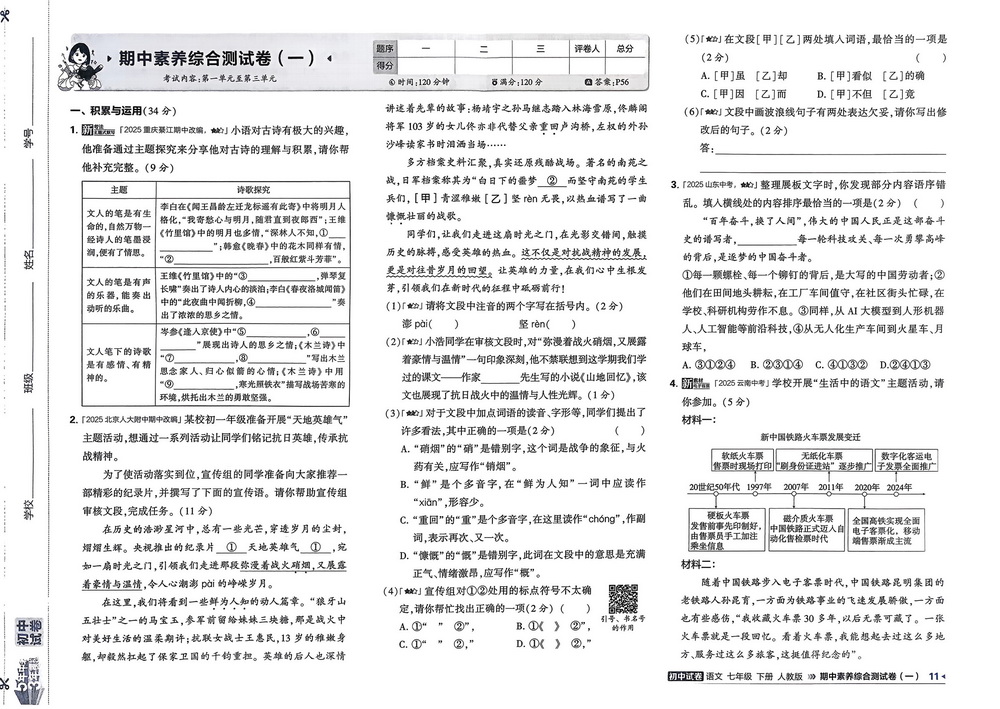 2024—2025学年合肥市新站区七年级下学期期中测试卷
