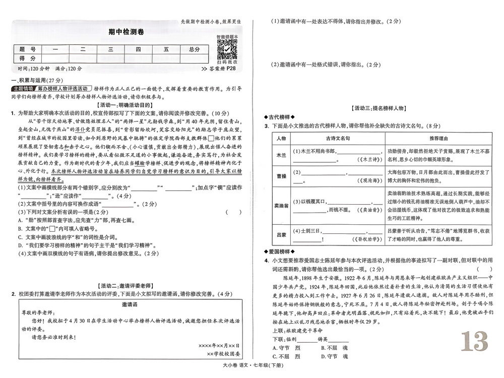 新教材人教版七年级下册语文期中测试卷五