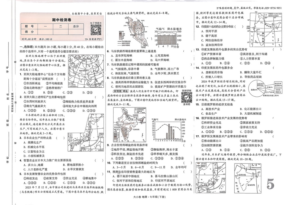 上一篇:新教材人教版七年级下册地理期中测试卷一