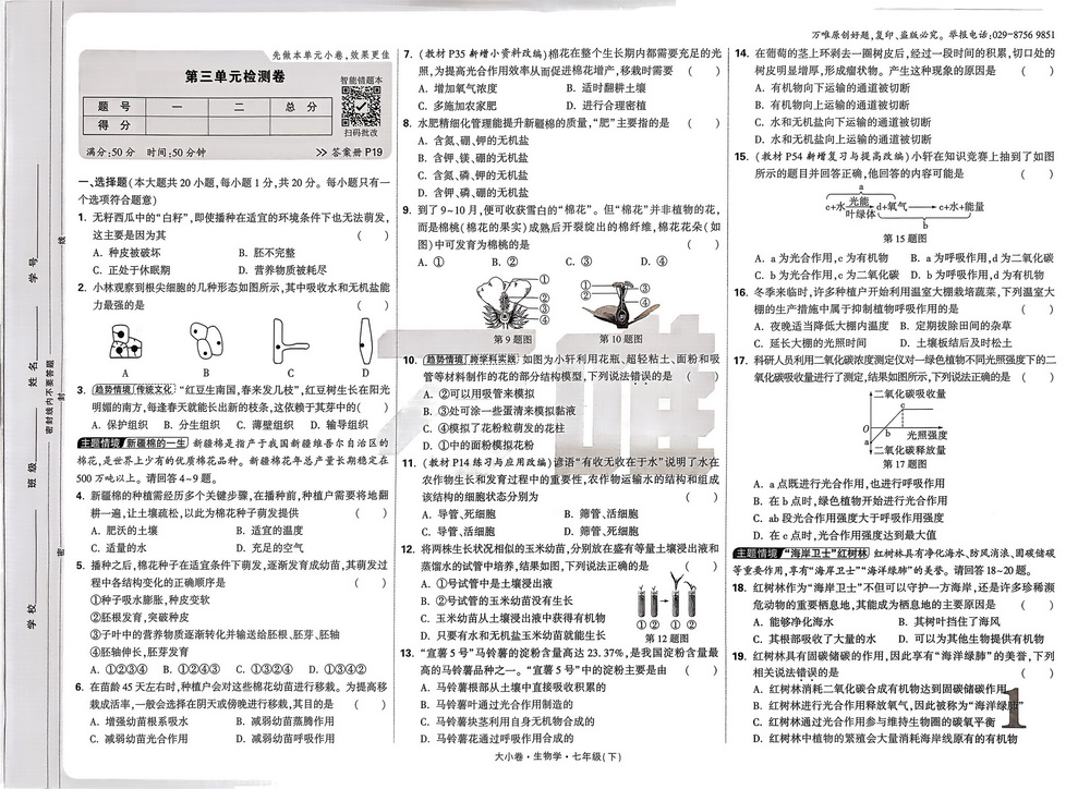 新教材人教版七年级下册生物第三单元第二章测试卷七