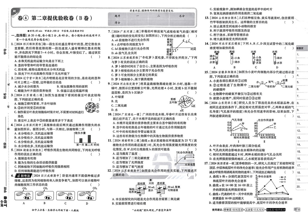 新教材人教版七年级下册生物第三单元第二章测试卷七