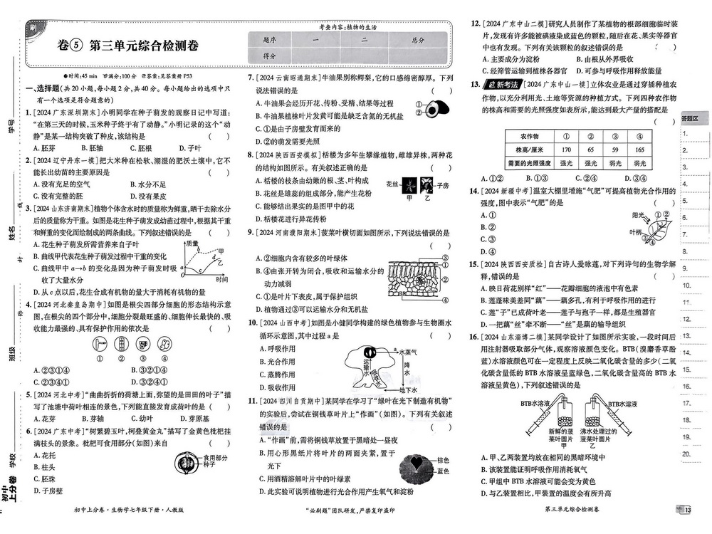 新教材人教版七年级下册生物第三单元第二章测试卷七