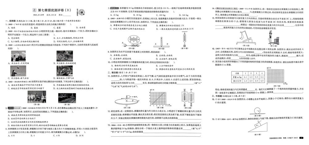 新教材人教版八年级下册物理第七章单元测试卷八