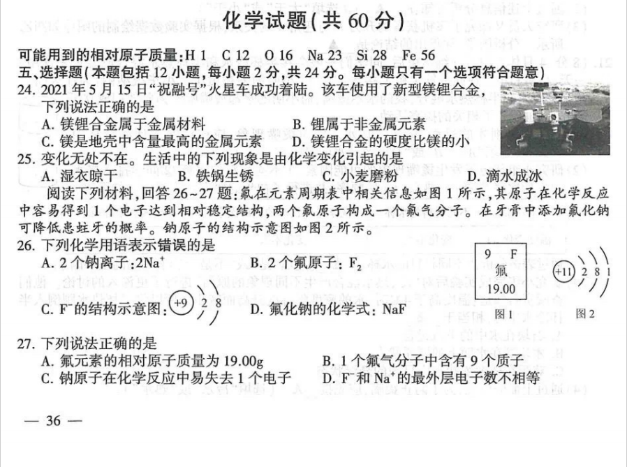 2022年山东省济宁市初中学业水平考试化学试卷