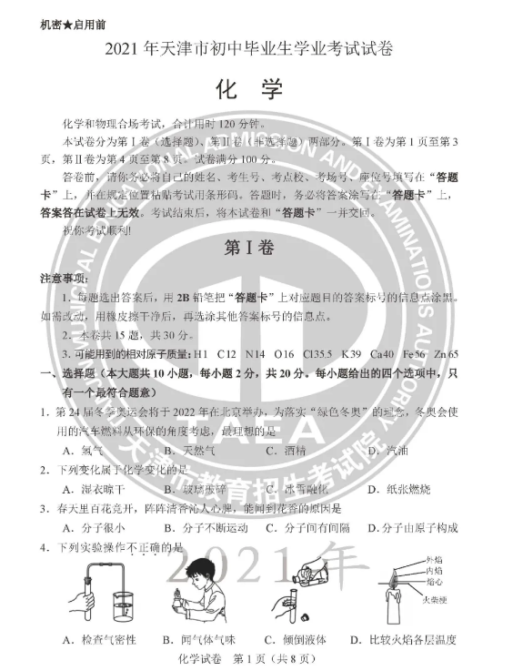 上一篇:2021年四川广安市初中学业水平考试化学中考真题试卷