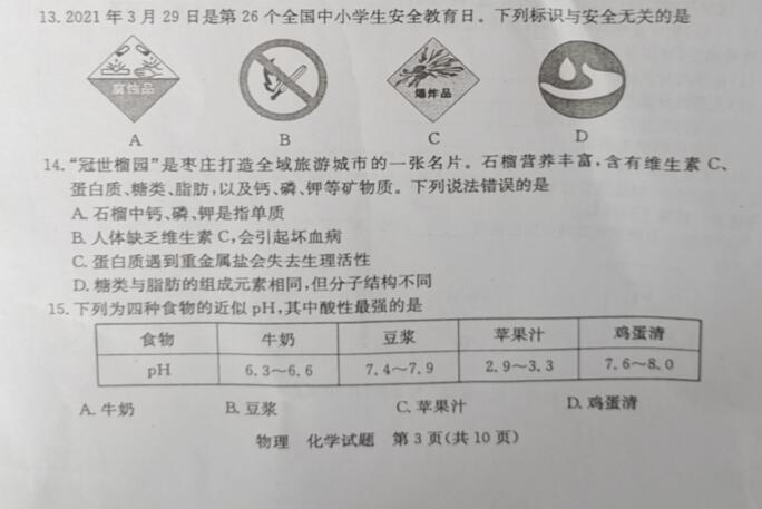 2021年山东枣庄市初中学业水平考试化学中考真题试卷