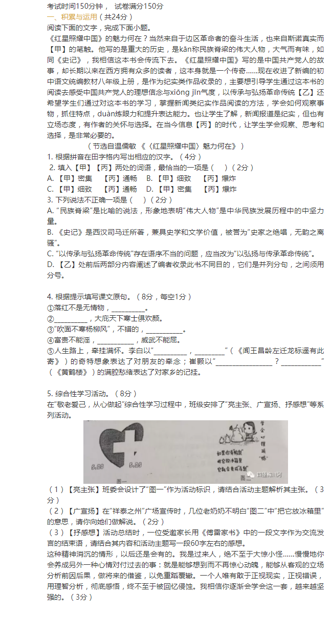 2022年宁夏初中毕业学业水平考试语文试卷
