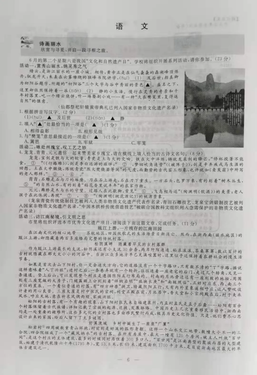 2021年浙江省丽水市初中学业水平考试语文试卷