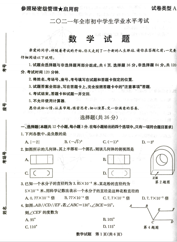 上一篇:2021年浙江衢州市初中学业水平考试数学试卷