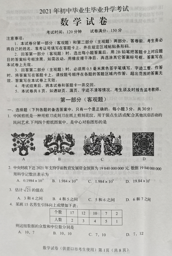 上一篇:2021年山东烟台市初中学业水平考试数学试卷