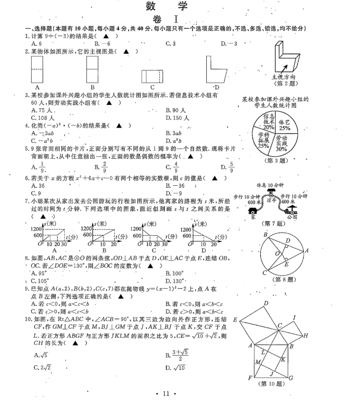 2022年浙江省温州市初中学业水平考试数学试题卷