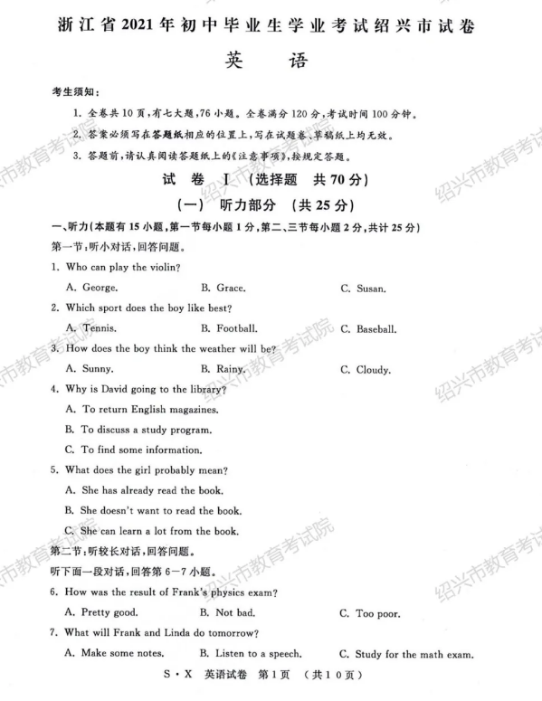 上一篇:2021年山东潍坊市初中学业水平考试英语真题