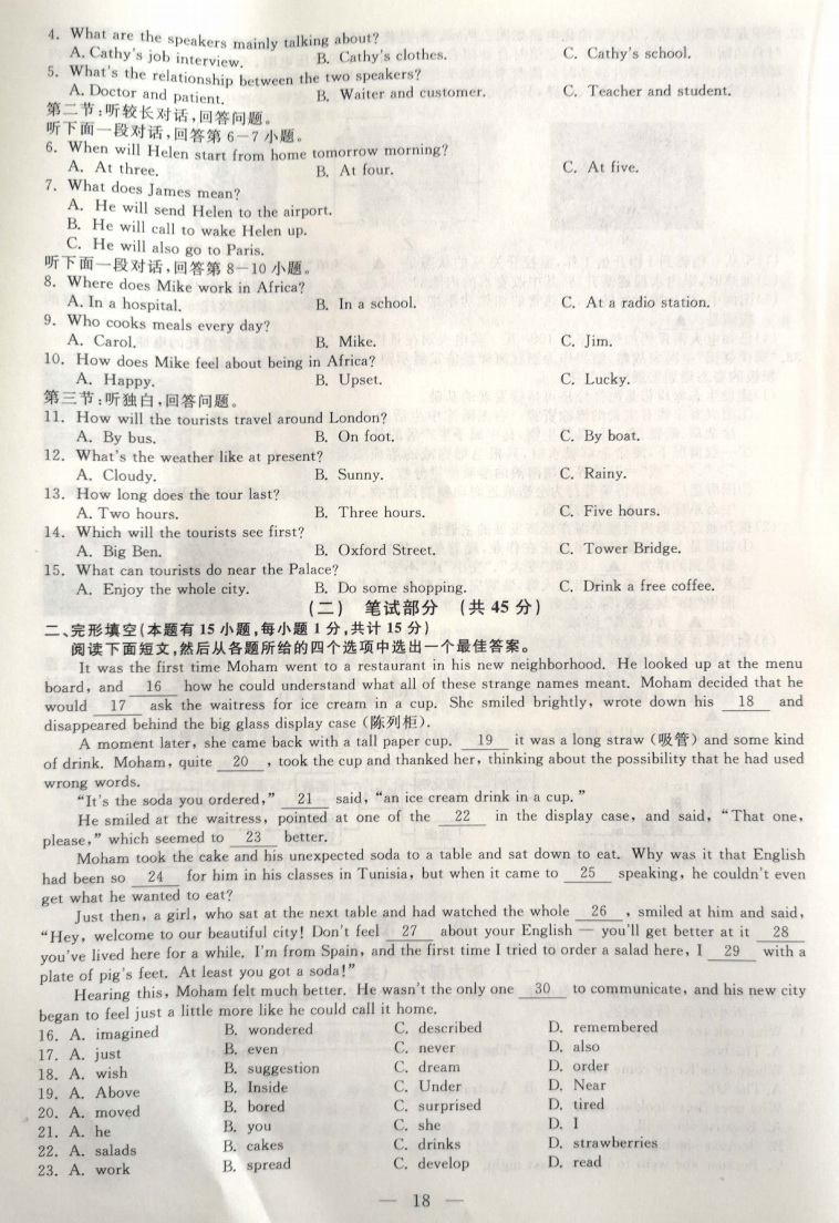 2022年浙江省绍兴市初中学业水平考试英语试卷