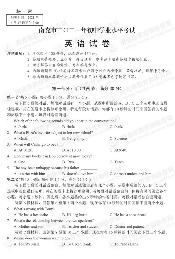 上一篇:2021年浙江宁波市初中学业水平考试英语真题