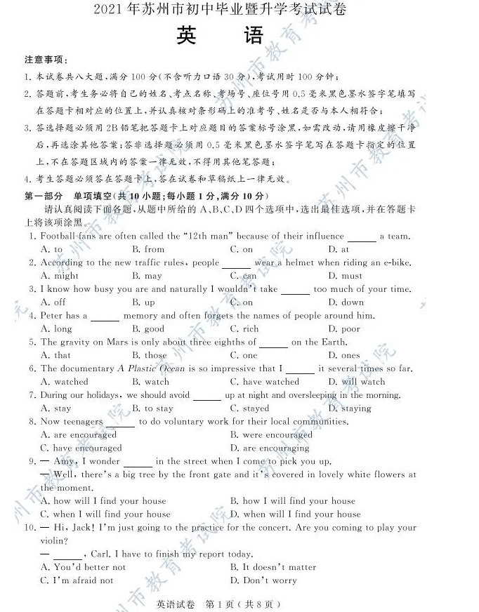 上一篇:2021年山东泰安市初中学业水平考试英语真题