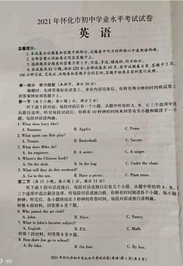 上一篇:2021年湖南湘潭市初中学业水平考试英语真题