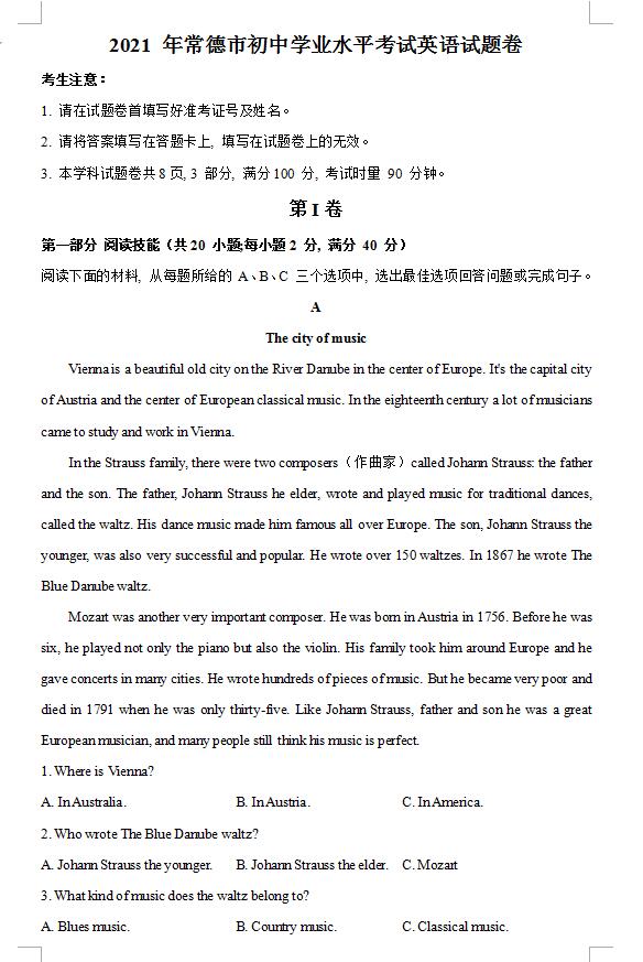 上一篇:2021年湖南怀化市初中学业水平考试英语真题