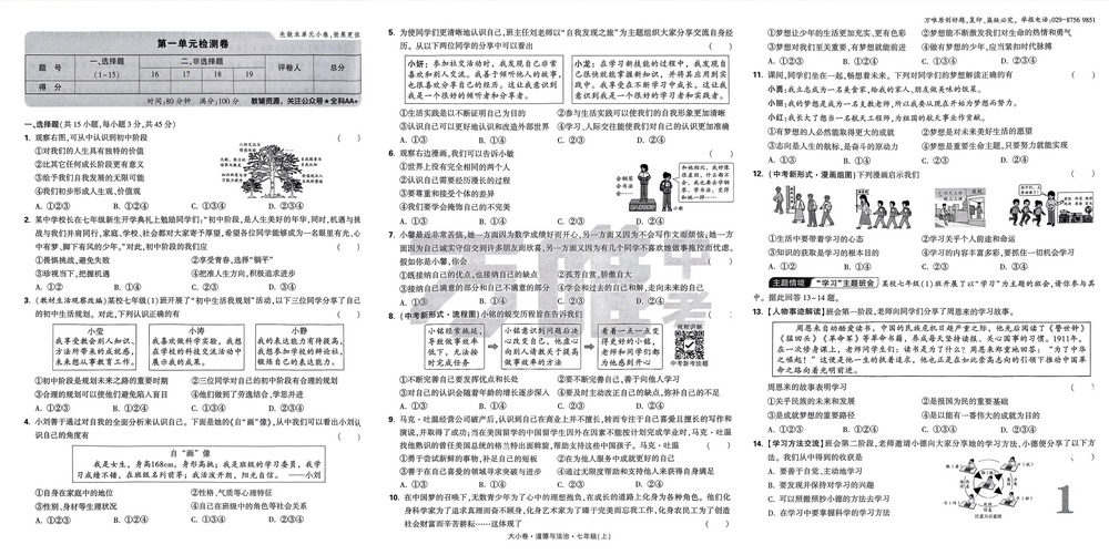 新教材人教版七年级上册道法第一单元测试卷六