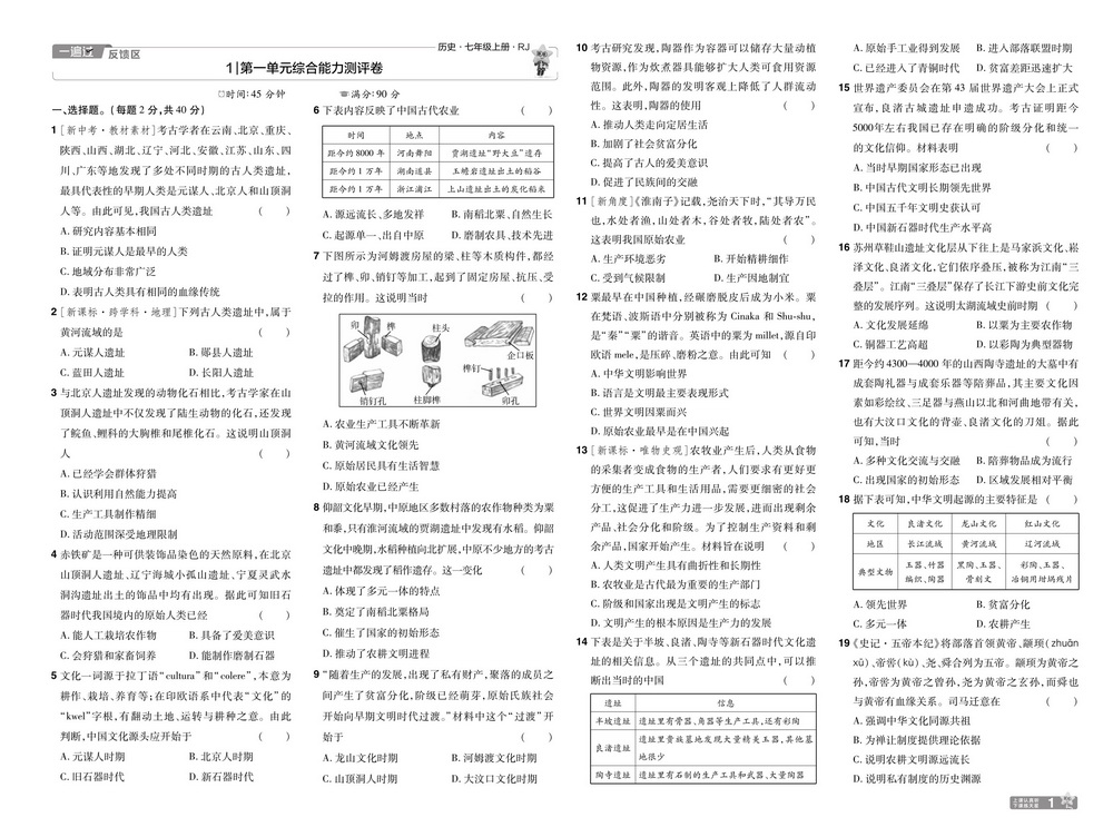 新教材人教版七年级上册历史第一单元测试卷一