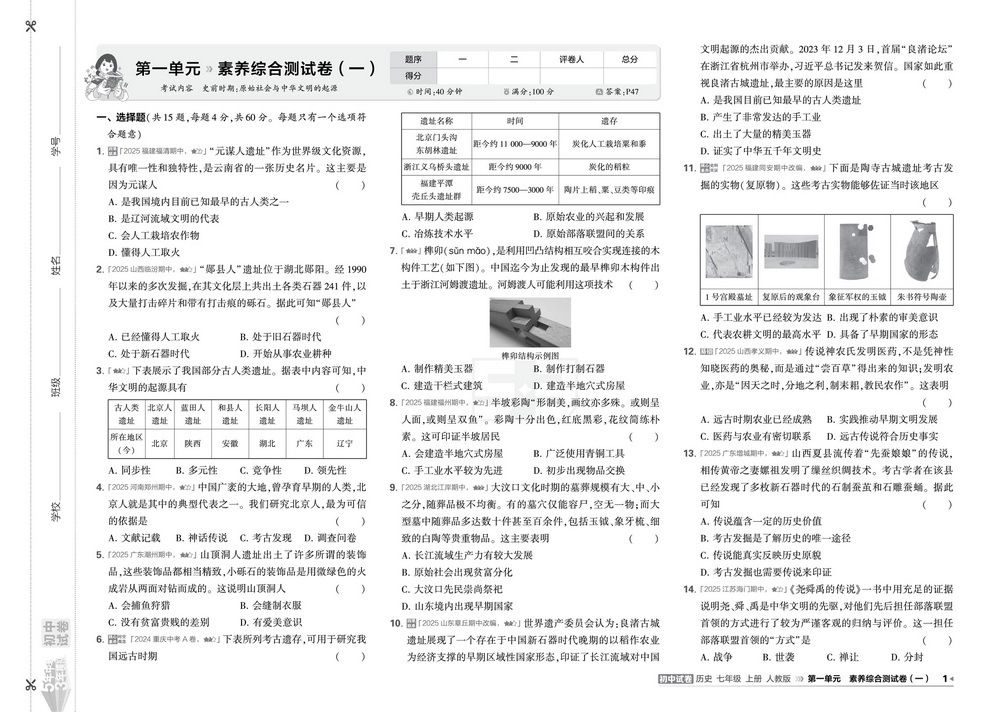 上一篇:新教材人教版七年级上册历史第一单元测试卷三