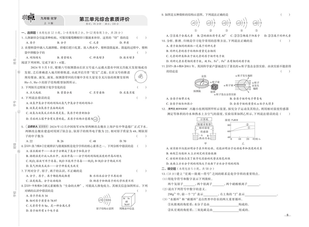 人教版九年级上册化学期末测试卷五