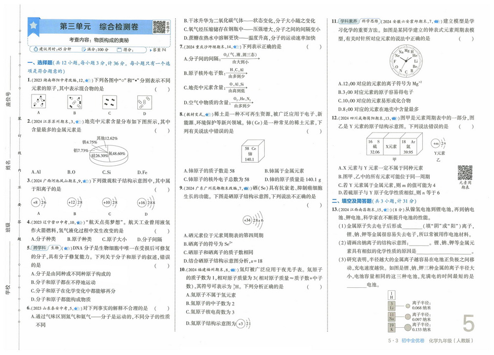上一篇:人教版九年级上册化学第三单元测试卷九