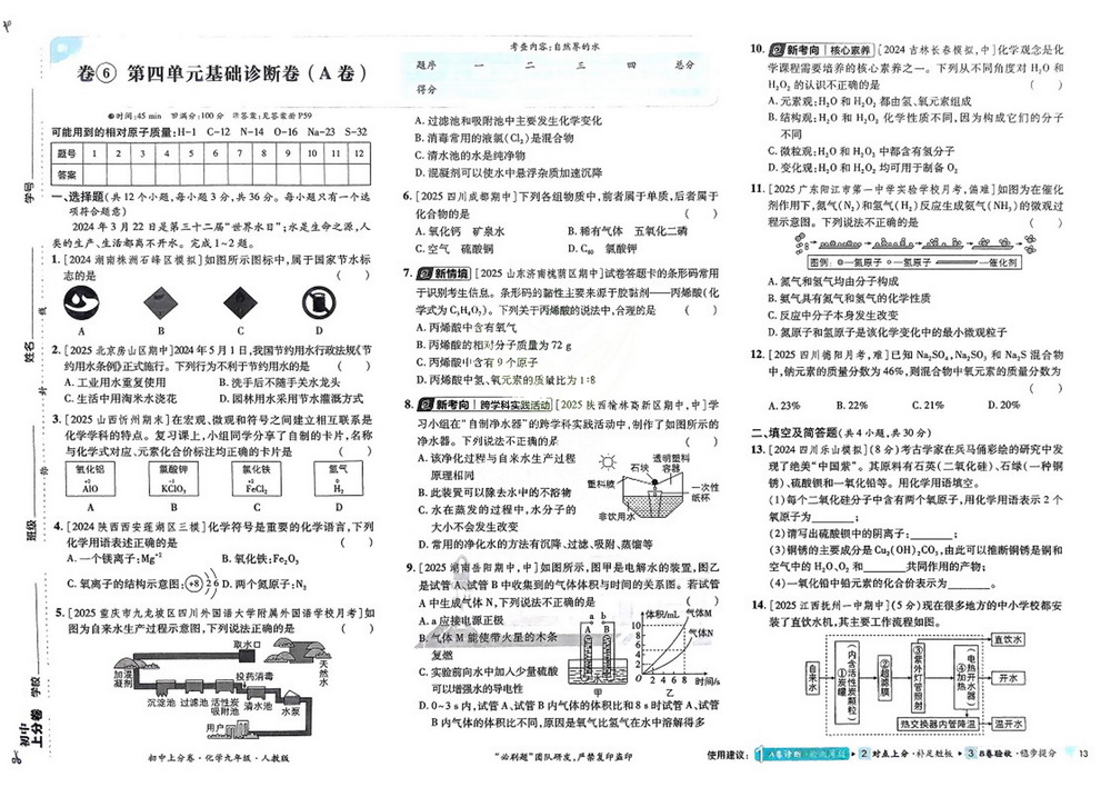 人教版九年级上册化学第四单元测试卷十(不高清)