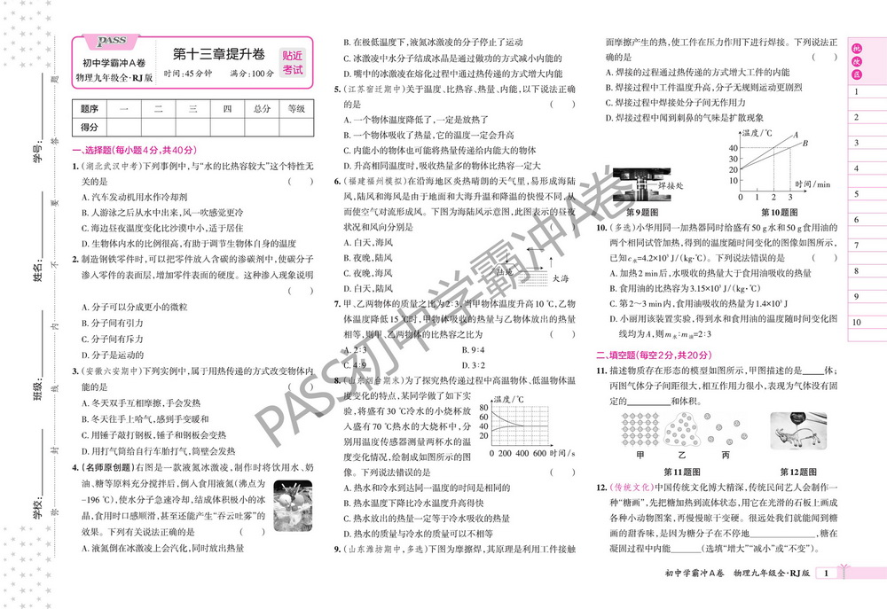 人教版九年级上册物理第十三章测试卷九