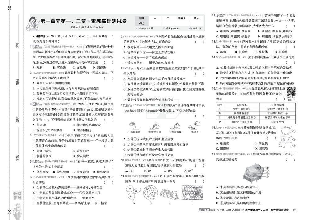 上一篇:新教材人教版七年级上册生物第一单元第一、二章测试卷二