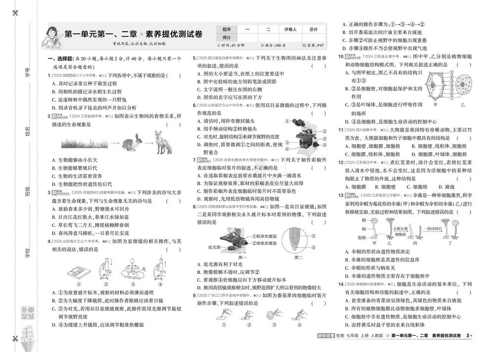 上一篇:新教材人教版七年级上册生物第一单元第一、二章测试卷三
