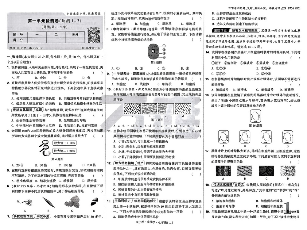 上一篇:新教材人教版七年级上册生物第一单元第一、二章测试卷五