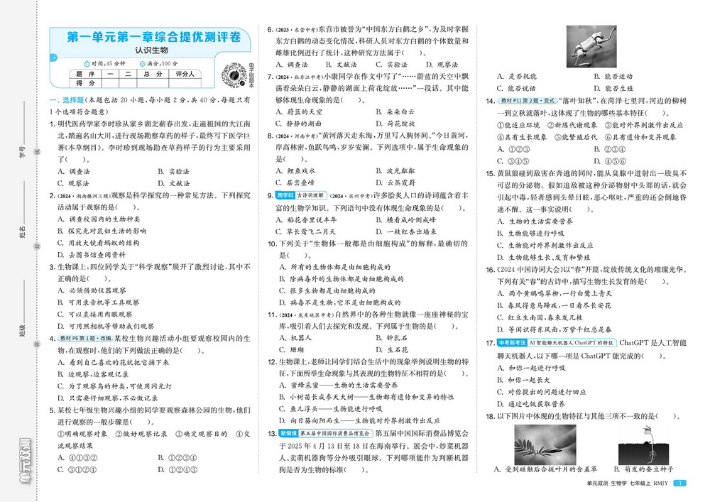 上一篇:新教材人教版七年级上册生物第一单元第一、二章测试卷七