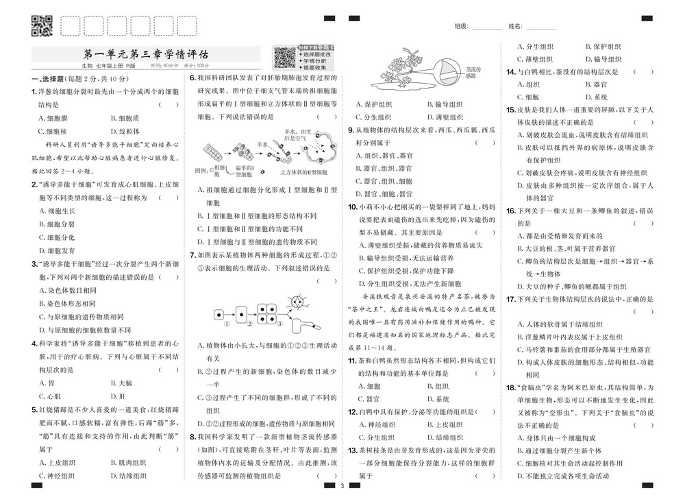 上一篇:新教材人教版七年级上册生物第一单元第一、二章测试卷八