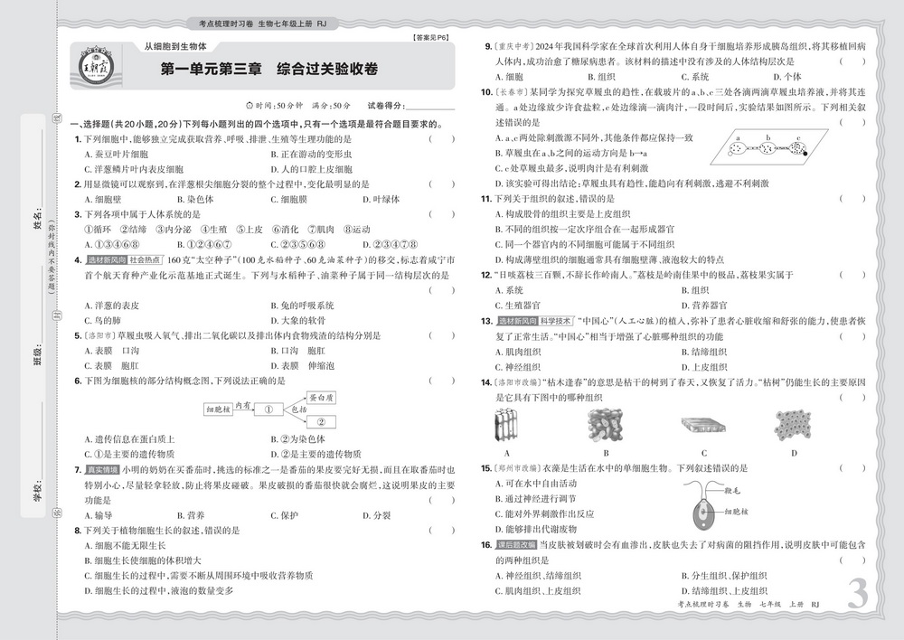 上一篇:新教材人教版七年级上册生物第一单元第三章测试卷三