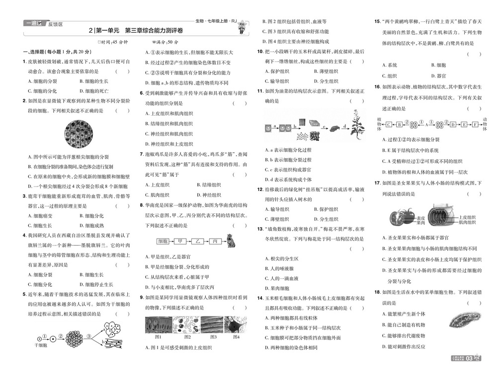 上一篇:新教材人教版七年级上册生物第一单元第三章测试卷四