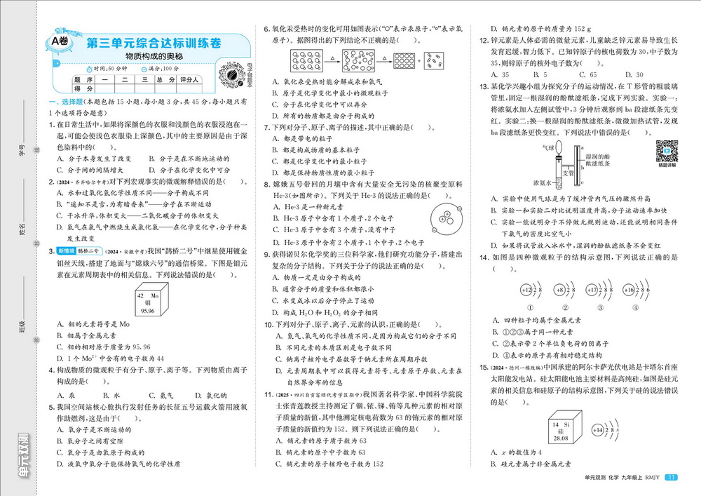 时间:120分钟 / 总分:120分/ 栏目:九年级化学上2025-09-22 20:40:35