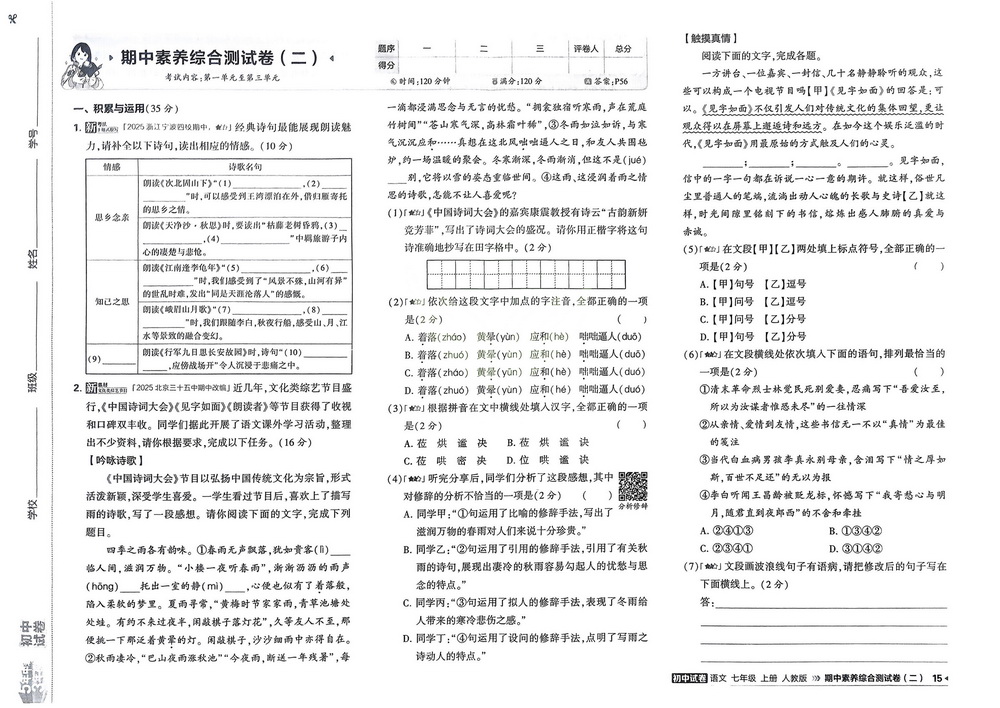 时间:120分钟 / 总分:120分/ 栏目:七年级语文上册2025-09-24 21:23:53