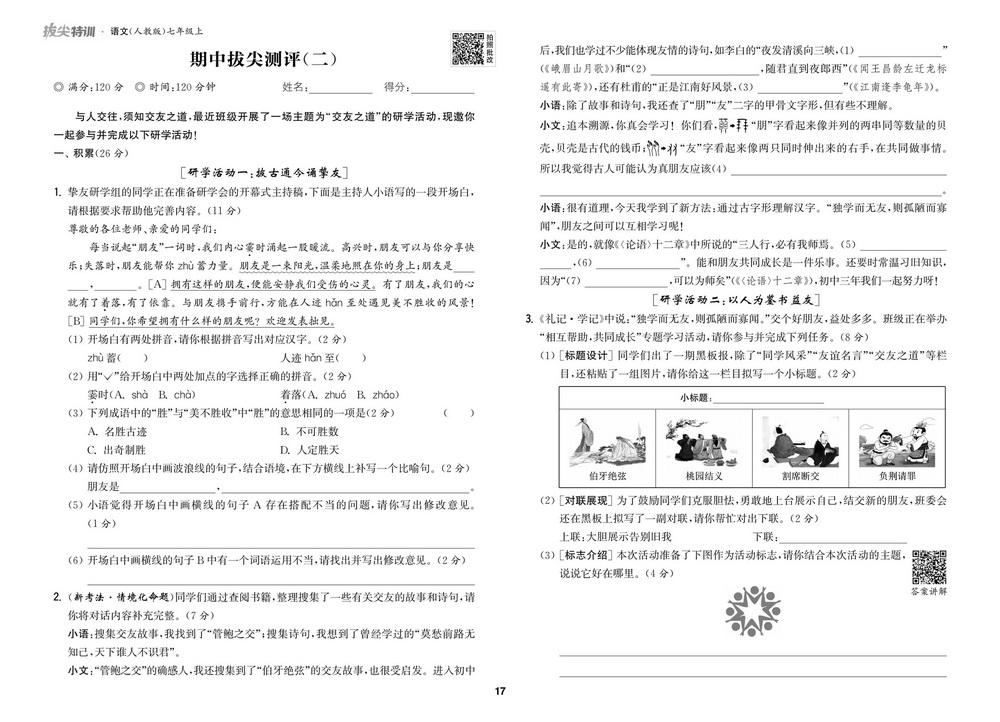 时间:120分钟 / 总分:120分/ 栏目:七年级语文上册2025-09-25 12:55:53