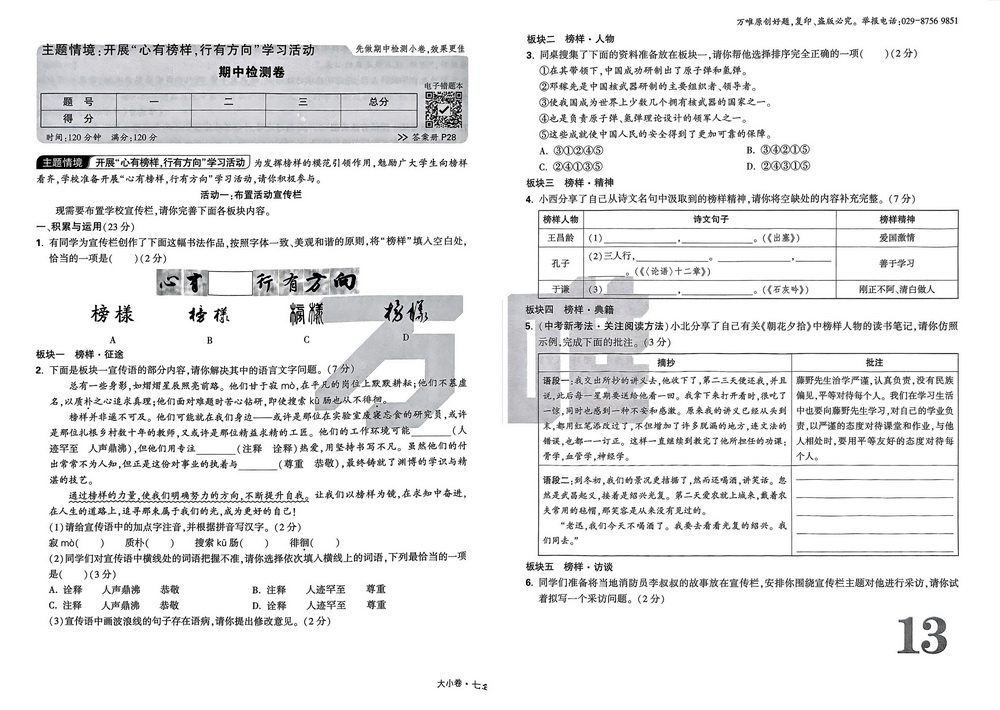 时间:120分钟 / 总分:120分/ 栏目:七年级语文上册2025-09-25 13:09:47