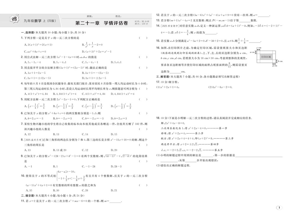 时间:120分钟 / 总分:120分/ 栏目:九年级数学上2025-09-28 16:22:05
