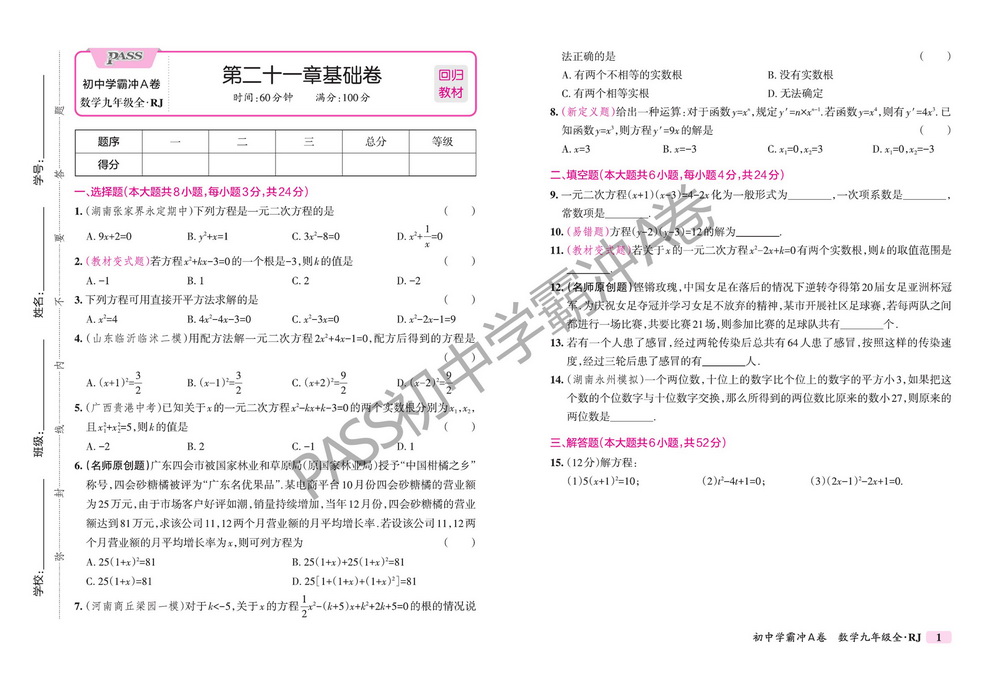 上一篇:人教版九年级上册数学第二十一章测试卷六