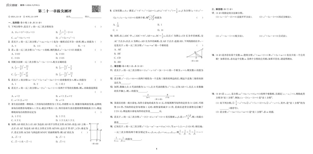 上一篇:人教版九年级上册数学第二十一章测试卷九
