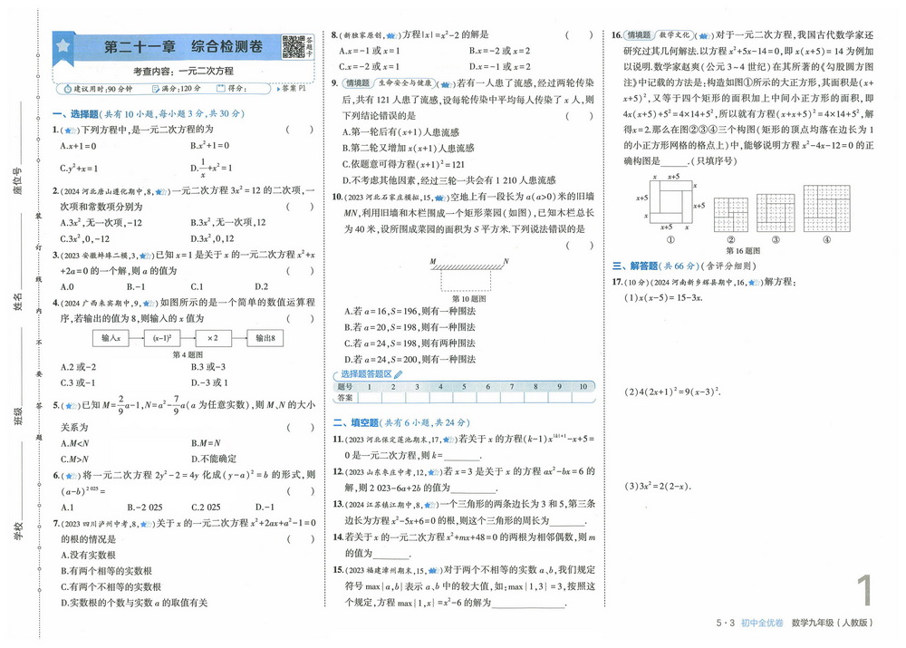 上一篇:人教版九年级上册数学第二十一章测试卷十