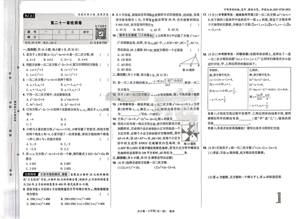 上一篇:人教版九年级上册数学第二十一章测试卷十一
