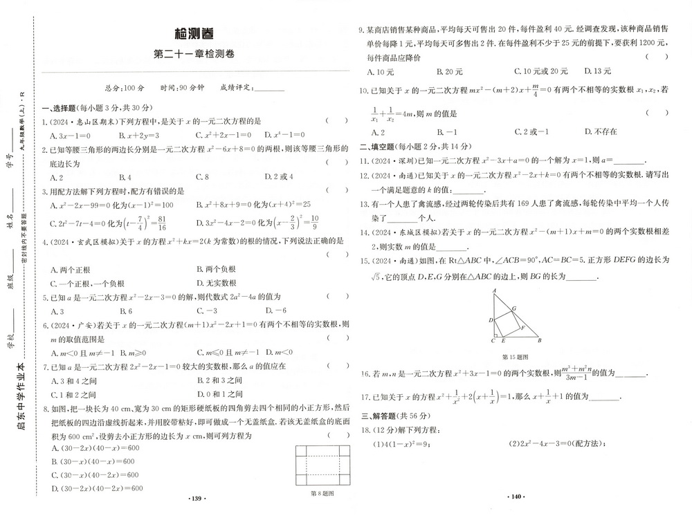 上一篇:人教版九年级上册数学第二十一章测试卷十二