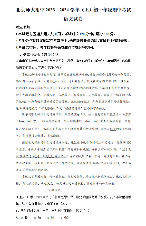 时间:120分钟 / 总分:120分/ 栏目:七年级语文上册2025-09-29 09:14:16